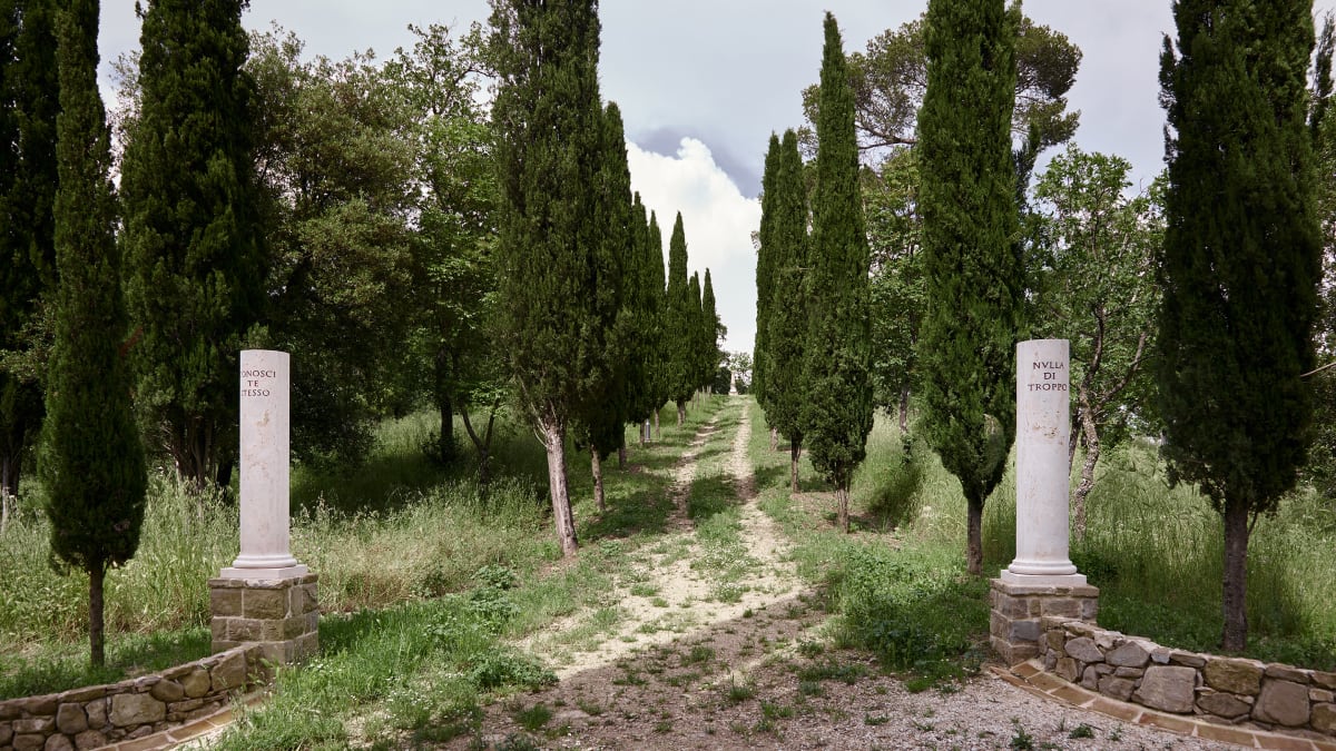 Лес духовности на холме Чима в Solomeo: вековые деревья, бенедиктинская духовность и самый важный монумент городка Брунелло Кучинелли.