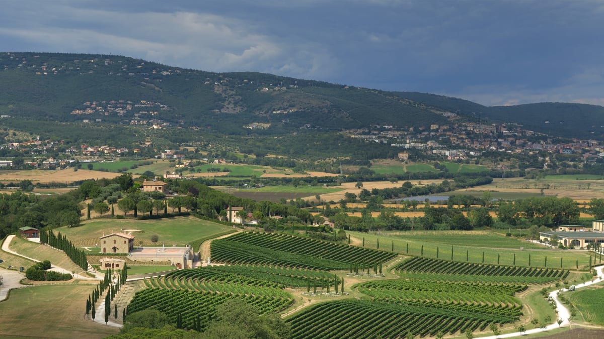 Виноградник использует древние техники культивации с планировкой позднеренессансного сада. Две кипарисовые аллеи с круговыми площадками отсылают к дизайну партера Виллы Ла-Петрайя - загородной резиденции Медичи во Флоренции. Статуя Бахуса у входа в погреб символизирует «греческие истоки глубокой связи между человеком и ландшафтом».