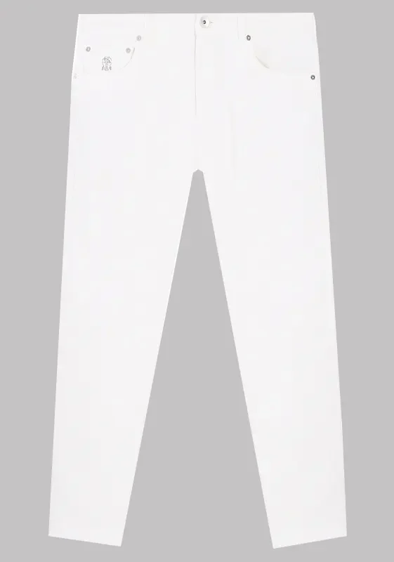 Джинсы Brunello Cucinelli цвета белого — это воплощение итальянского стиля и философии Соломео, где ценятся утончённость и внимание к деталям. Изготовленные из премиального денима с добавлением эластана, они обеспечивают комфорт и свободу движений в любом повседневном сценарии. Деликатная обработка материала подчёркивает высокое качество изделия, создавая универсальный силуэт, который гармонично вписывается в гардероб современного мужчины. Эти джинсы станут отличным дополнением как к повседневному образу, так и к более формальным ансамблям. Их можно сочетать с лёгкими рубашками и свитерами для создания непринуждённого стиля, или с пиджаками и классическими обувными моделями для более официальных мероприятий. Доступные в размере 52, они подчеркнут вашу уверенность и чувство стиля в любой ситуации. Выбирая джинсы от Brunello Cucinelli, вы выбираете утончённость и итальянскую элегантность.