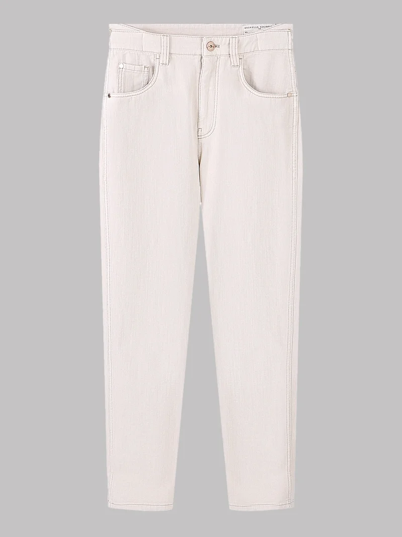 Откройте для себя элегантность и утонченность джинсов от Brunello Cucinelli, выполненных в изысканном бежевом цвете. Изготовленные из 100% хлопка, они представляют собой воплощение итальянского мастерства и философии бренда, основанной на уважении к традициям и совершенству. Артикул MP93PP5596 предлагает премиальный деним и деликатную обработку ткани, что делает эти джинсы универсальным элементом гардероба. Их изящный силуэт подходит для самых разных образов, от повседневных до более формальных. Сочетайте эту модель с классической белой рубашкой и сандалиями для расслабленного дневного выхода, или добавьте элегантный блейзер и туфли на каблуке для вечернего мероприятия. Доступные в размере 44, эти джинсы станут вашим надежным спутником в любой ситуации, демонстрируя непревзойденное качество и стиль, характерные для бренда из живописного региона Соломео.