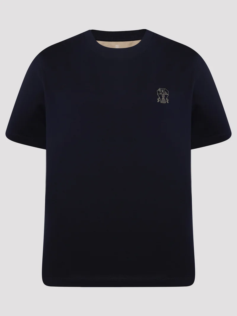 Футболка синего цвета от Brunello Cucinelli представляет собой образец итальянского мастерства и сдержанной элегантности. Изготовленная из 100% хлопка, она отличается плотной текстурой и правильным кроем, обеспечивающим комфорт и внимание к деталям. Эта модель, предлагающая размер XL, станет удачным выбором для тех, кто ценит качество и минимализм в одежде. Футболка прекрасно сочетается с брюками чинос или джинсами, что позволяет создать как повседневный, так и более формальный образ. Благодаря своей универсальности, она подходит для различных случаев — от прогулок по городу до неформальных встреч. Вдохновлённая философией Соломео, которая подчеркивает гармонию и баланс, эта футболка отражает ценности бренда, уделяющего внимание не только внешнему виду, но и внутреннему содержанию вещей.
