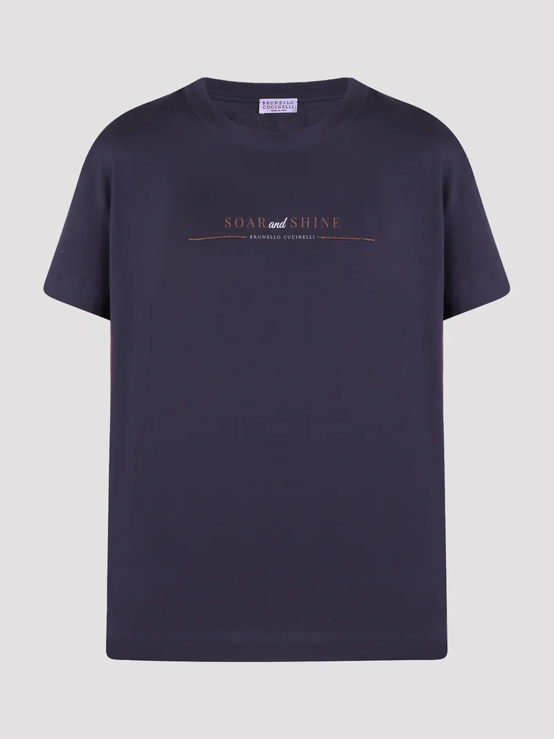Футболка от Brunello Cucinelli — это воплощение сдержанной элегантности и итальянского мастерства. Выполненная из 100% хлопка, она обеспечивает комфорт и долговечность. Темно-синий цвет добавляет модели универсальности, позволяя ей стать базовым элементом гардероба. Эта футболка из категории женских изделий идеально сочетается как с джинсами для повседневных прогулок, так и с классическими брюками для более формальных случаев. Благодаря правильному крою, футболка подчеркивает фигуру, не теряя при этом в комфорте. Философия Соломео, которой придерживается бренд Brunello Cucinelli, заключает в себе сочетание традиций и современности, что делает эту модель актуальной в любых обстоятельствах. Единственный доступный размер L обеспечивает идеальную посадку для обладательниц этого размера. Цена изделия составляет 75 760 ₽, что отражает высокий уровень качества и престиж, связанный с именем Brunello Cucinelli.