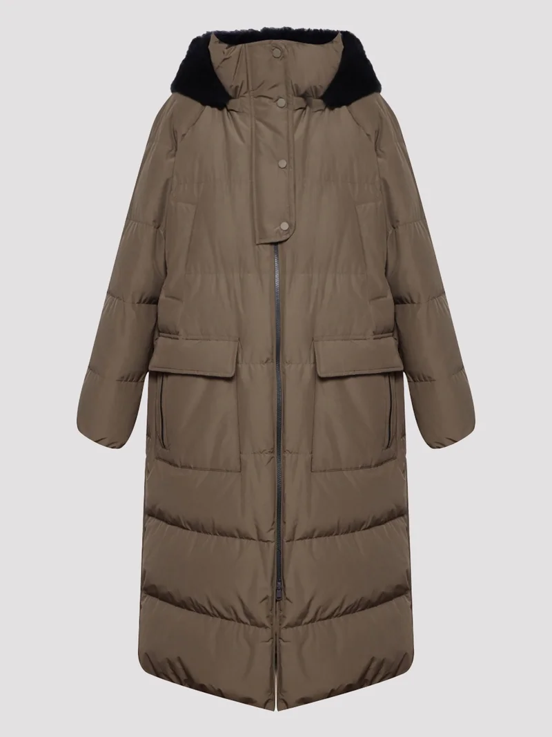 Пуховик Brunello Cucinelli в элегантном коричневом оттенке — это воплощение премиального итальянского дизайна и философии Соломео. Созданный из высококачественных материалов, этот пуховик сочетает в себе 55% полиэстера и 45% хлопка, что обеспечивает комфорт и долговечность. Наполнитель из 90% гусиного пуха и 10% гусиного пера гарантирует тепло даже в самые холодные дни. Эта модель женской верхней одежды, представленная в размере 44, отличается продуманным силуэтом и прекрасно вписывается в гардероб современной женщины. Коричневый цвет добавляет образу утонченности и универсальности, что позволяет носить пуховик как в деловой обстановке, так и в более расслабленной атмосфере. Он гармонично сочетается с классическими брюками и юбками, а также с джинсами и свитерами в повседневных ансамблях. Изделие отражает стремление бренда Brunello Cucinelli к сочетанию традиций и инноваций, присущих итальянской моде. Этот пуховик станет надежным спутником в вашем гардеробе, даря уют и стиль в каждой детали.