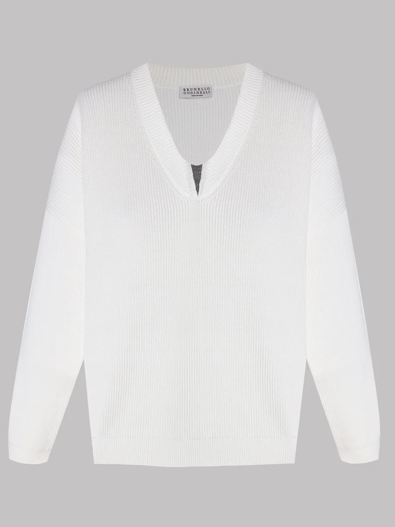Пуловер цвета молочный от Brunello Cucinelli — это воплощение итальянского мастерства и философии Соломео. Созданный из 100% хлопка, он является частью ключевой категории knitwear, известной своим высоким качеством пряжи и традицией ручной работы. Этот женский пуловер доступен в размерах S и M, предлагая универсальный комфорт и стиль. Молочный оттенок изделия позволяет легко сочетать его с разнообразными элементами гардероба. Пуловер будет уместен как в повседневной обстановке, так и в более формальных случаях, подчеркивая ваш утонченный вкус. Носите его с брюками или юбкой, создавая непринужденные, но элегантные образы. Бренд Brunello Cucinelli славится своим вниманием к деталям и стремлением к совершенству, что делает каждую вещь уникальной. Пуловер из Соломео — это не только модный акцент, но и символ итальянского наследия и культурных традиций.
