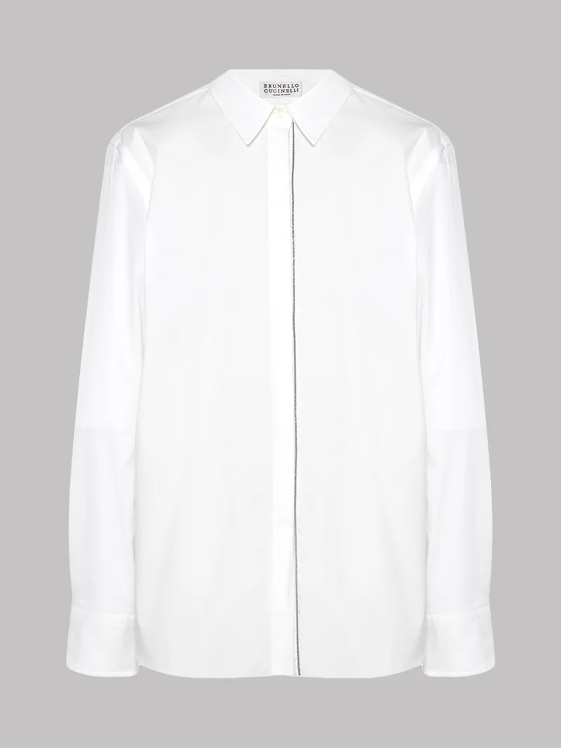 Рубашка Brunello Cucinelli в белом цвете, артикул M0091B1184, представлена в категории женской одежды и воплощает философию итальянского бренда, основанного в Соломео. Изготовленная из высококачественного материала, состоящего из 72% хлопка, 23% полиамида и 5% эластана, она сочетает в себе комфорт и элегантность. Тонкий хлопок обеспечивает легкость и удобство в носке, в то время как аккуратный воротник добавляет образу сдержанности и утонченности. Эта рубашка доступна в размере XL и станет прекрасным дополнением гардероба как для деловых встреч, так и для повседневных выходов. Она гармонично сочетается с классическими брюками или юбкой, а также может быть комбинирована с джинсами для создания более расслабленного образа. Бренд Brunello Cucinelli известен своим вниманием к деталям и стремлением к совершенству, что делает эту рубашку достойной представительницей его коллекции.