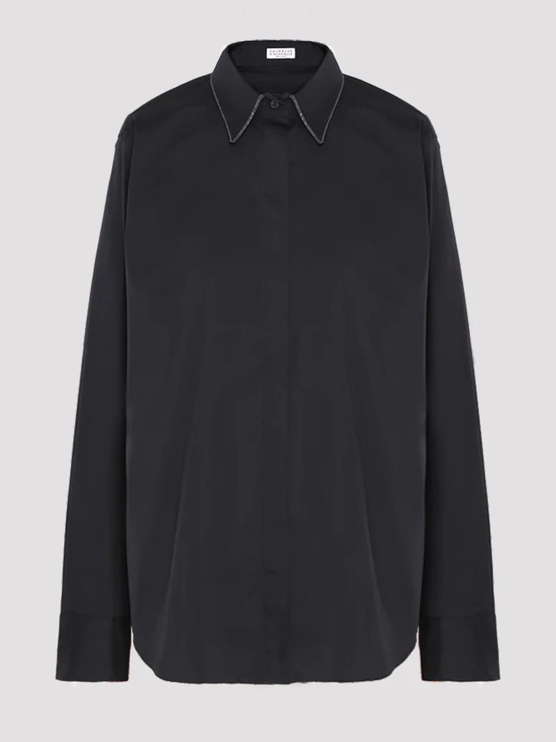 Рубашка Brunello Cucinelli черного цвета — это воплощение итальянской элегантности и утонченности. Изготовленная из тонкого хлопка с добавлением полиамида и эластана, она обеспечивает комфорт и легкость в носке. Эта модель сочетает в себе аккуратный воротник и сдержанный стиль, что делает её подходящей для самых разнообразных случаев — от деловых встреч до более неформальных мероприятий. Доступная в размерах S и M, рубашка является частью женской коллекции, отражающей философию Соломео, где каждый элемент одежды создается с вниманием к деталям и уважением к традициям итальянского ремесла. Она прекрасно сочетается как с классическими брюками, так и с джинсами, позволяя создавать разнообразные образы. Выбирая эту рубашку от Brunello Cucinelli, вы делаете ставку на качество и стиль, характерные для продукции этого знаменитого бренда.