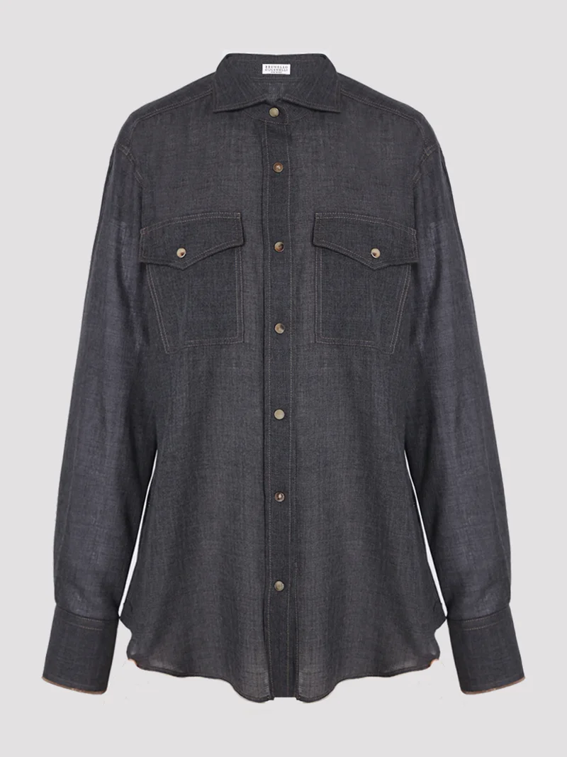 Элегантная рубашка от итальянского бренда Brunello Cucinelli выполнена из 100% шерсти и представлена в изысканном темно-сером цвете. Этот предмет гардероба олицетворяет собой философию бренда, основанную на гармонии и сдержанности, которую бережно культивируют в сердце Умбрии, в древнем Соломео. Благодаря своему лаконичному дизайну и аккуратному воротнику, рубашка станет прекрасным дополнением как делового, так и повседневного образа. Она идеально сочетается с классическими брюками или юбкой-карандашом для создания офисного лука, а также с джинсами или шортами для более непринужденной обстановки. Доступные размеры XS и S позволят вам выбрать подходящий вариант для комфортной посадки. Эта рубашка станет отличным выбором для тех, кто ценит качество и эстетику итальянского стиля в любых обстоятельствах.