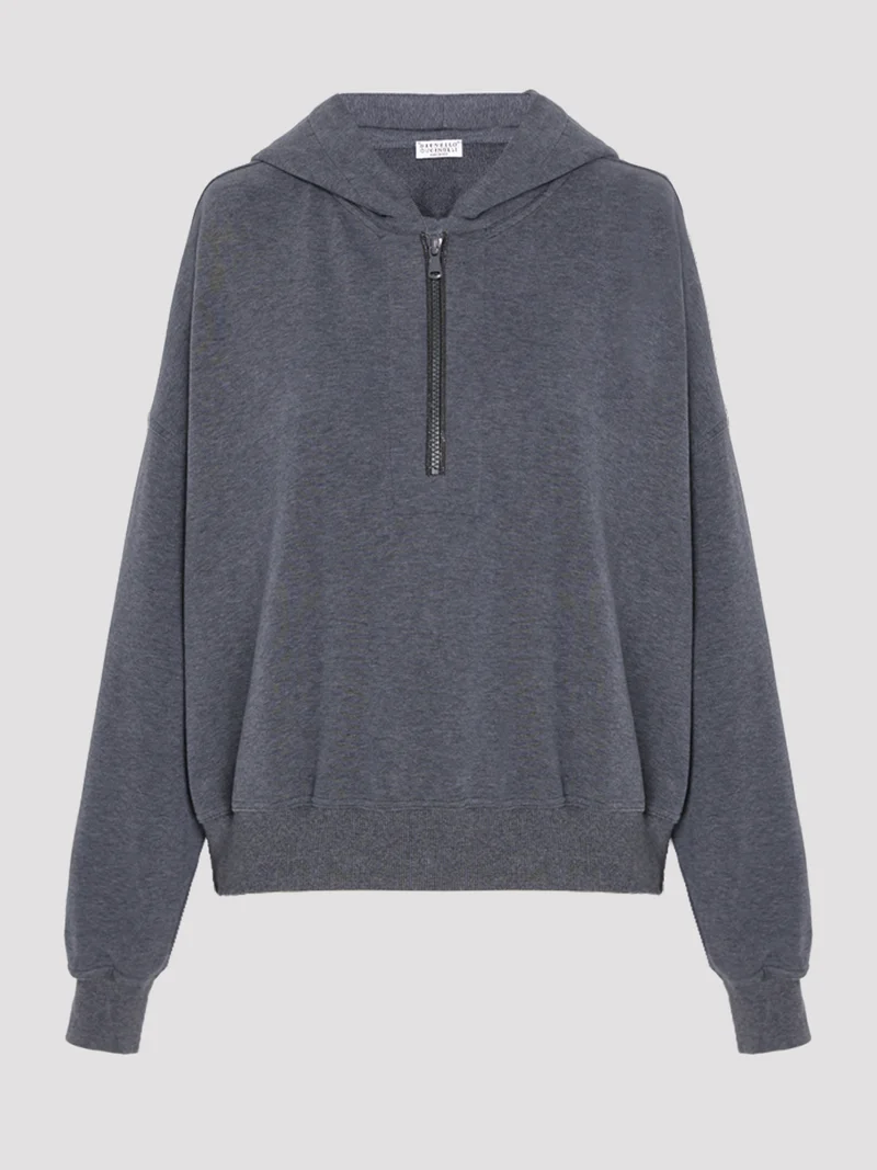 Толстовка от Brunello Cucinelli в темно-сером цвете воплощает в себе элегантность и сдержанность итальянского стиля. Изготовленная из 100% хлопка, она становится частью ключевой категории knitwear знаменитого бренда, известного своим мастерством работы с трикотажем и вниманием к деталям. Каждое изделие Brunello Cucinelli, включая эту толстовку, рождается в сердце Италии — в живописном городке Соломео, где традиции ручной работы и высокое качество пряжи сочетаются с современными дизайнерскими решениями. Эта толстовка прекрасно подойдет для повседневного гардероба, добавив нотку итальянского шика в ваш образ. Она легко комбинируется как с джинсами, так и с более формальными брюками, что делает ее универсальным вариантом для различных случаев — от прогулки по городу до неформальной встречи с друзьями. Доступные размеры M и L позволяют выбрать наиболее подходящий вариант для комфортной посадки. Надежное качество и изящный стиль Brunello Cucinelli делают этот элемент гардероба изысканным выбором для женщин, ценящих комфорт и утонченность.